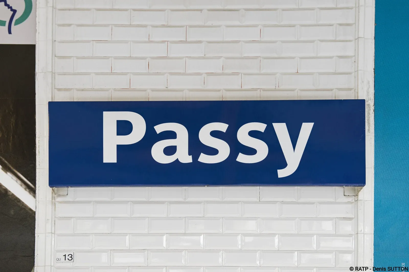 Is the Passy metro underground or above ground? Well, a bit of both. The station is located at the edge of the Chaillot hill, which supports the Trocadéro square right next to it. The underground part of the platforms extends onto a viaduct, leaving the station open-air. This original configuration allows you to gain height to see the platform from above, or on the contrary, to walk in the street under the pillars of the viaduct to follow the tracks of line 6 to the Seine.