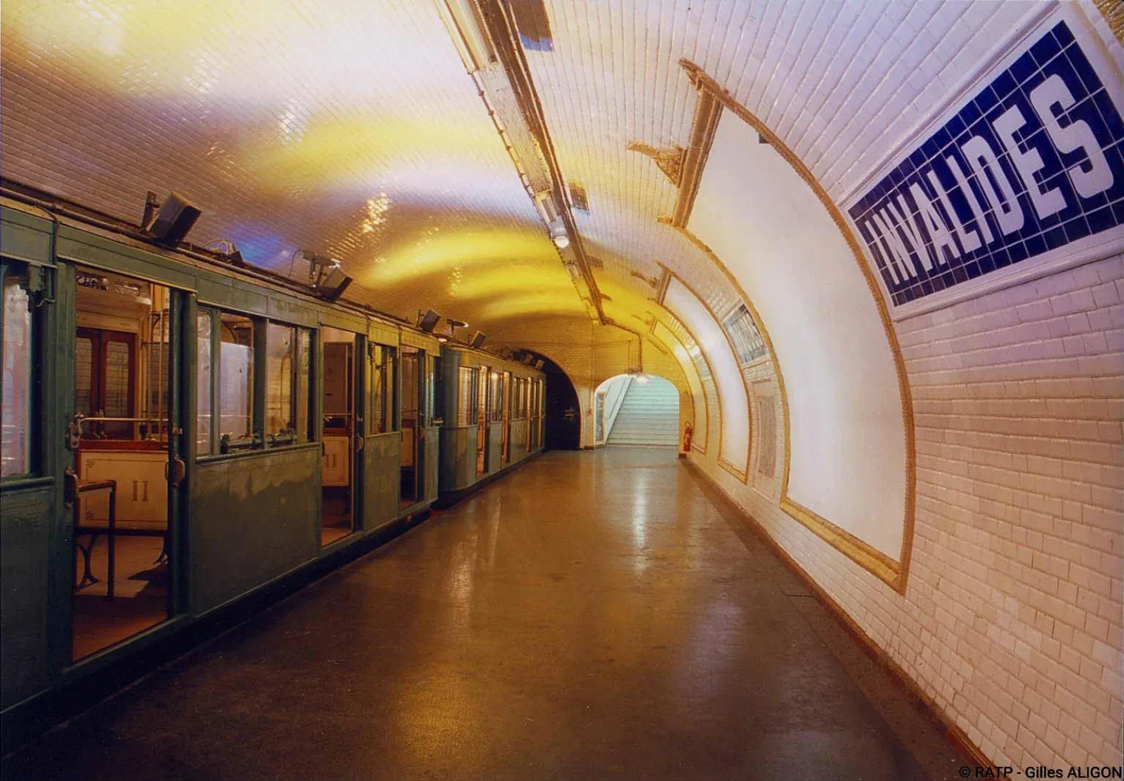 Alors qu’est devenue la station fantôme ? Le quai a été raccourci dans les années 70 pour y construire des bureaux de la RATP, et une rame de métro historique datant des années 30 est garée sur la partie restante des quais.